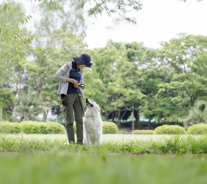- アイコンタクトを取りながら歩けるようになりお散歩の時間が楽しい!